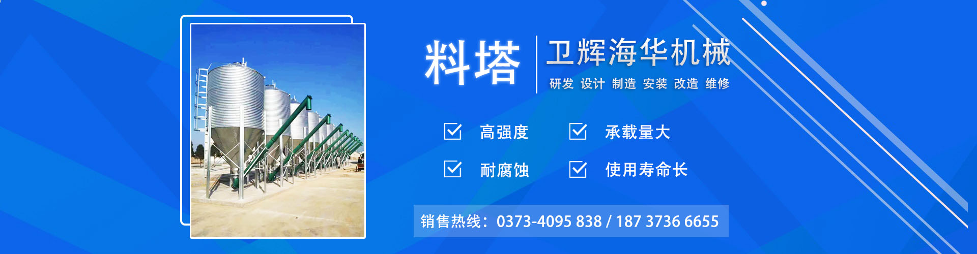 衛輝市海華機械有限公司專業從事料塔料線、飼料攪拌機等方面的研發廠家,主要生產銷售散裝料塔、不銹鋼攪拌機、臥式攪拌機、小型飼料粉碎機、顆粒機、混合機等飼料機械設備。